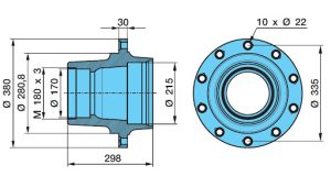 Dimensi : M 180 x 3 / Ø 170/215 / 280,8 / 10 x Ø 22 / 335